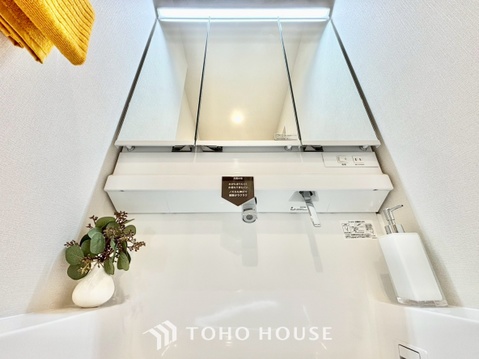 ◆洗面◆清潔感のある水回り。白で統一されたスタイリッシュな空間。毎日使う場所だから究極にシンプルにこだわりました。