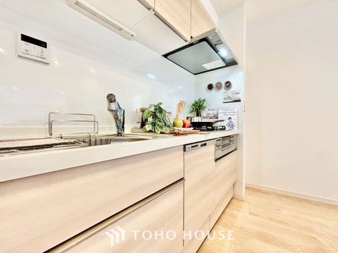 ◆キッチン◆美しく使いやすいキッチンは油汚れが簡単に拭き取れる素材で加工されており、浄水器シャワーから流す水の音を軽減する静かなシンクを採用。見えないところにさり気ない配慮が嬉しいですね
