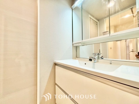 • ◆洗面◆清潔感のある水回り。白で統一されたスタイリッシュな空間。毎日使う場所だから究極にシンプルにこだわりました。