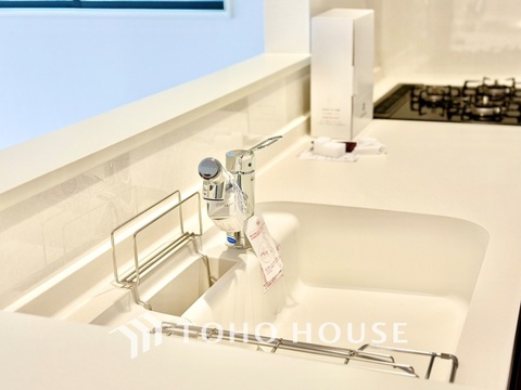【Kitchen】浄水器内蔵・可動式のシャワーヘッド。水はねや大きな洗い物も計算したシンク。システムキッチンは家事をずっと楽にしてくれる。