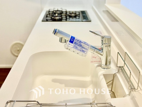 【Kitchen】浄水器内蔵・可動式のシャワーヘッド。水はねや大きな洗い物も計算したシンク。システムキッチンは家事をずっと楽にしてくれる。