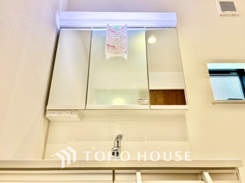 十分な大きさの洗面台は収納力大。身だしなみチェックや歯磨きなど、朝の慌ただしい時間でも余裕とゆとりを感じられる。