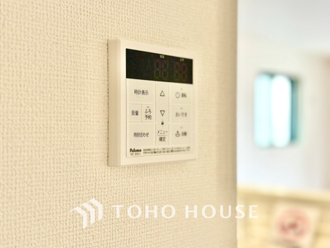 湯張り、追い焚きが自動でできるリモコンをキッチンに設置。お風呂に行かなくてもお風呂が沸いたことを知らせてくれる。