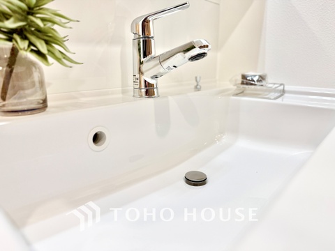 • ◆洗面◆清潔感のある水回り。白で統一されたスタイリッシュな空間。毎日使う場所だから究極にシンプルにこだわりました。