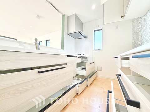 • 食器収納も充実した、片付けやすいキッチン。毎日の家事が快適に進みます。