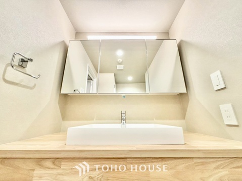 ◆洗面◆清潔感のある水回り。白で統一されたスタイリッシュな空間。毎日使う場所だから究極にシンプルにこだわりました。