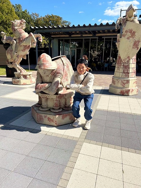 ハリーポッターに出てくるチェスの駒の模型とツーショット。やはりハリーポッターは魅了されましたね~